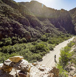 One of the great days of the Freedom Challenge — physically demanding, visually breathtaking, and emotionally unforgettable. You’ll begin by climbing up the Swartberg Pass, a masterpiece of old engineering that winds skyward through sandstone cliffs. The air cools, the views expand, and the sense of scale is immense. After seemingly endless switchbacks, nearing the summit, you’ll see the turnoff to Gamkaskloof — also known as “Die Hel.” A sticker-festooned warning sign — “Dangerous Road for 48 km! Use at own risk!” — is an indication of the challenge ahead. To be fair, it’s not that bad on a bicycle that needs just a small strip of good surface to find a riding line. Don’t be fooled into thinking you simply drop into Gamkaskloof. You will eventually — down a winding track carved into a cliff face that will test both nerves and brakes. Before that, the road will rise and fall as it makes its way through the folds of the mountain. Nearing the final drop into the valley, take a moment. Before you, Gamkaskloof lies cupped in the Swartberg mountains. The valley, long and narrow, is a thin green ribbon stitched into the harsh, folded rock. A place where a small community once chose this solitude over the world beyond the mountains. After dropping into the Kloof, you’ll see the remnants of the old smallholdings. Untended patches of land and orchards where the isolated families once coaxed life from stubborn soil, year after year. The quiet grit of a people now remembered in the names of cottages that line the single road that threads through the valley. After a lunch stop at the rustic Gamkaskloof Restaurant, the trail continues through the Kloof. After crossing the Gamka River, the track winds through private property, bringing you to the foot of Die Leer — The Ladder. Die Leer is an old, rugged footpath once used to gain access to the Kloof before the road was built in 1962. Manhandling your bike up the perilous cliff face, imagine what it was like for donkeys, laden with goods. Topping out a rugged track takes you to the district road near Bosluiskloof. From there, a good road takes you on to your overnight stop at Sandrivier. It’s a 98 km day that will keep you busy from before sunrise to sunset. By the time you reach Sandrivier, you’ll feel both spent and transformed. Today is pure Freedom — a day that demands everything and gives even more in return.